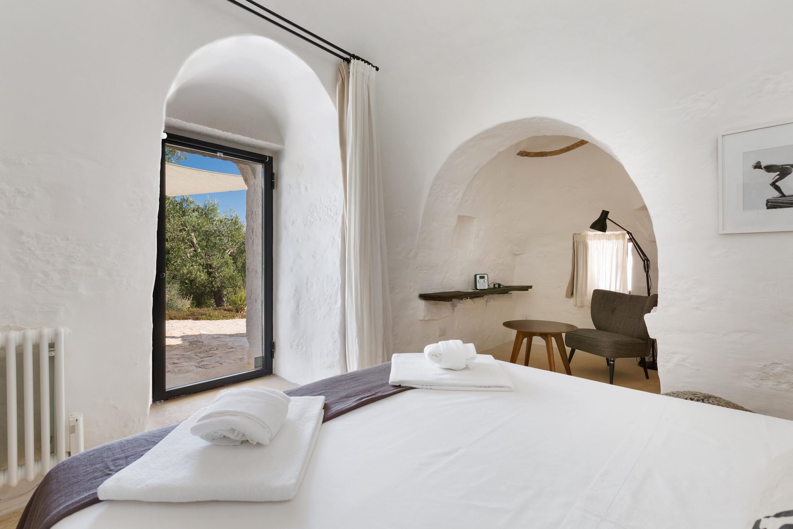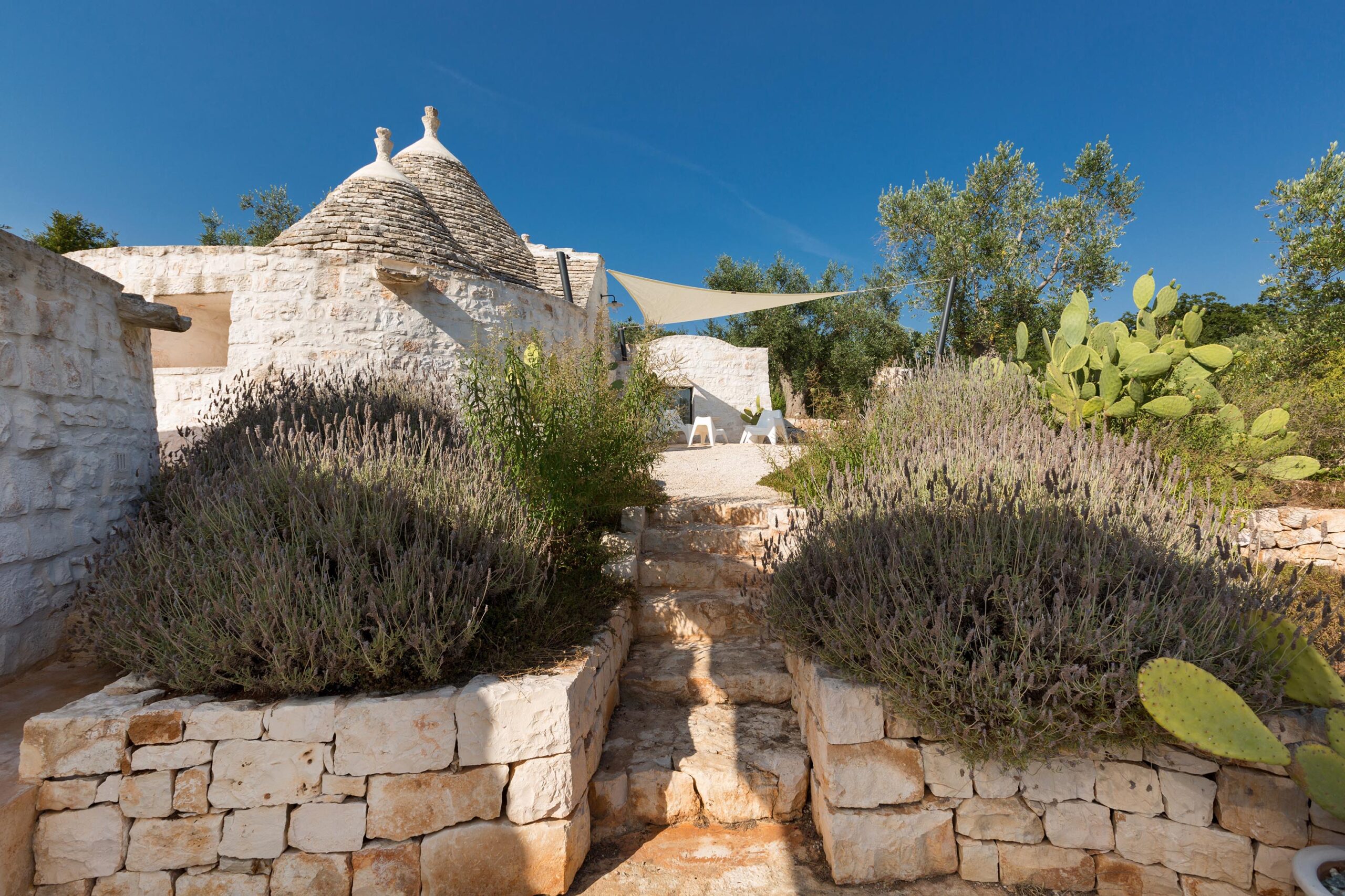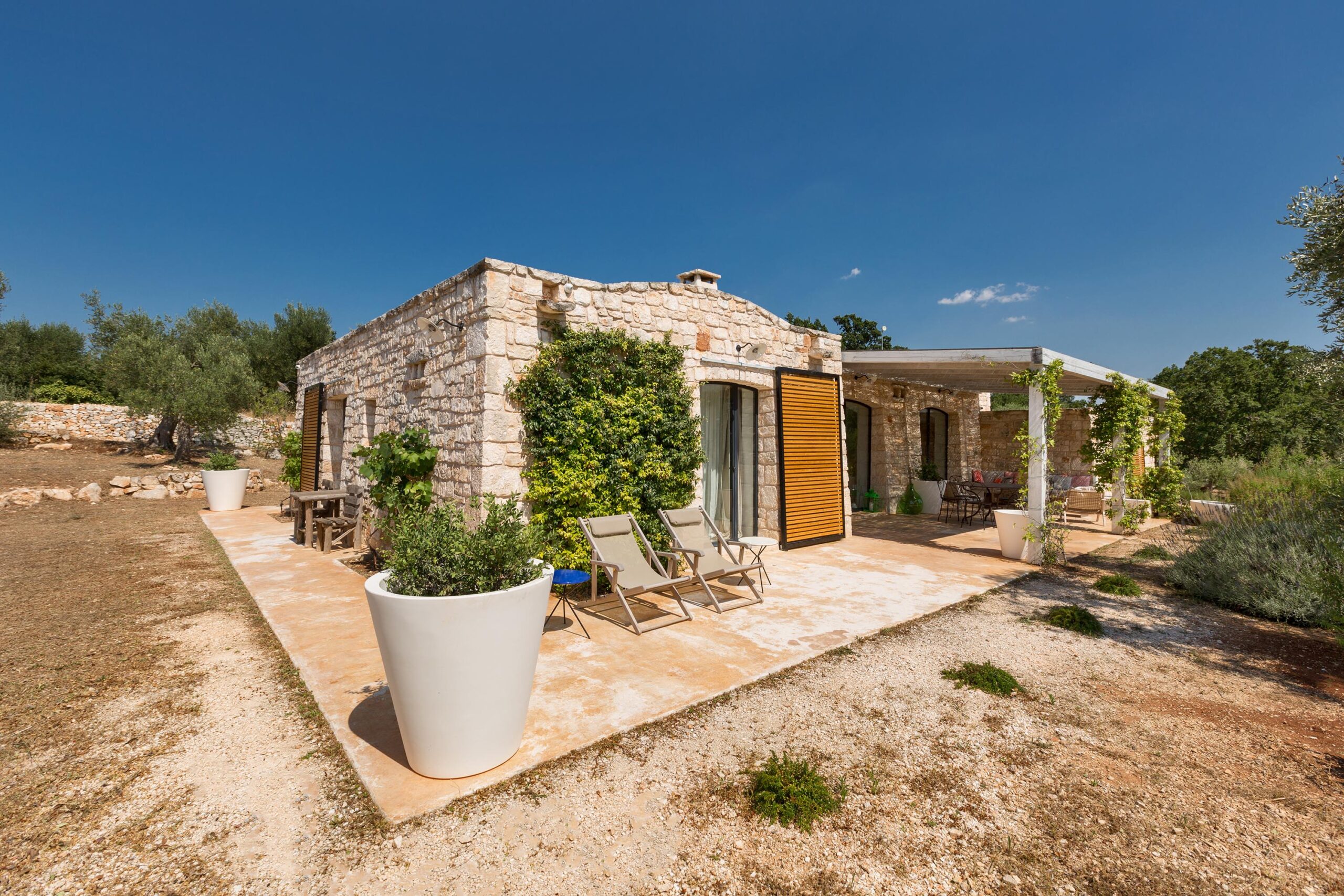 The property is located in the rural landscape of the Valle d’Itria, south of Ostuni, characterized by olive groves and traditional stone architecture.
