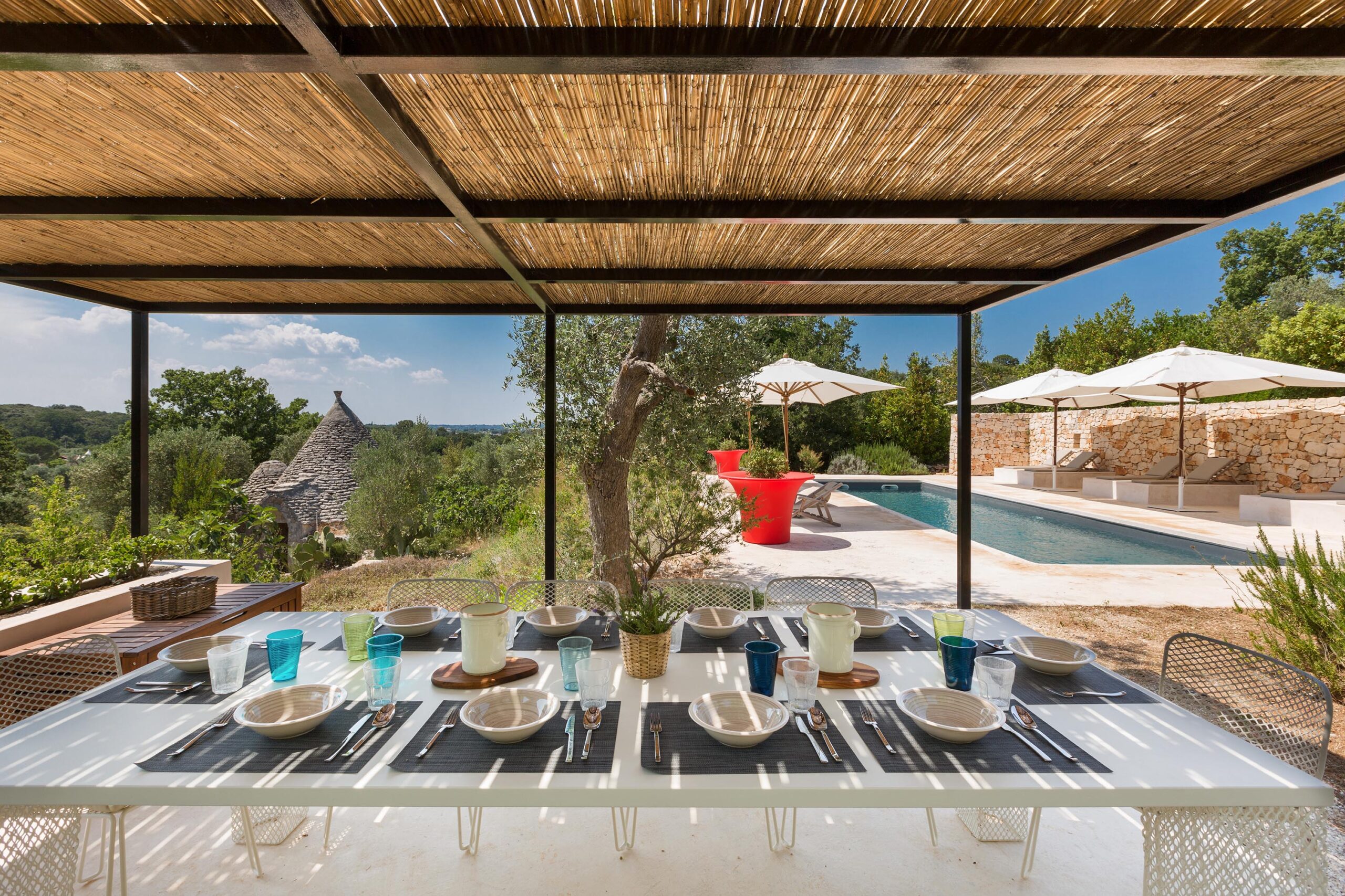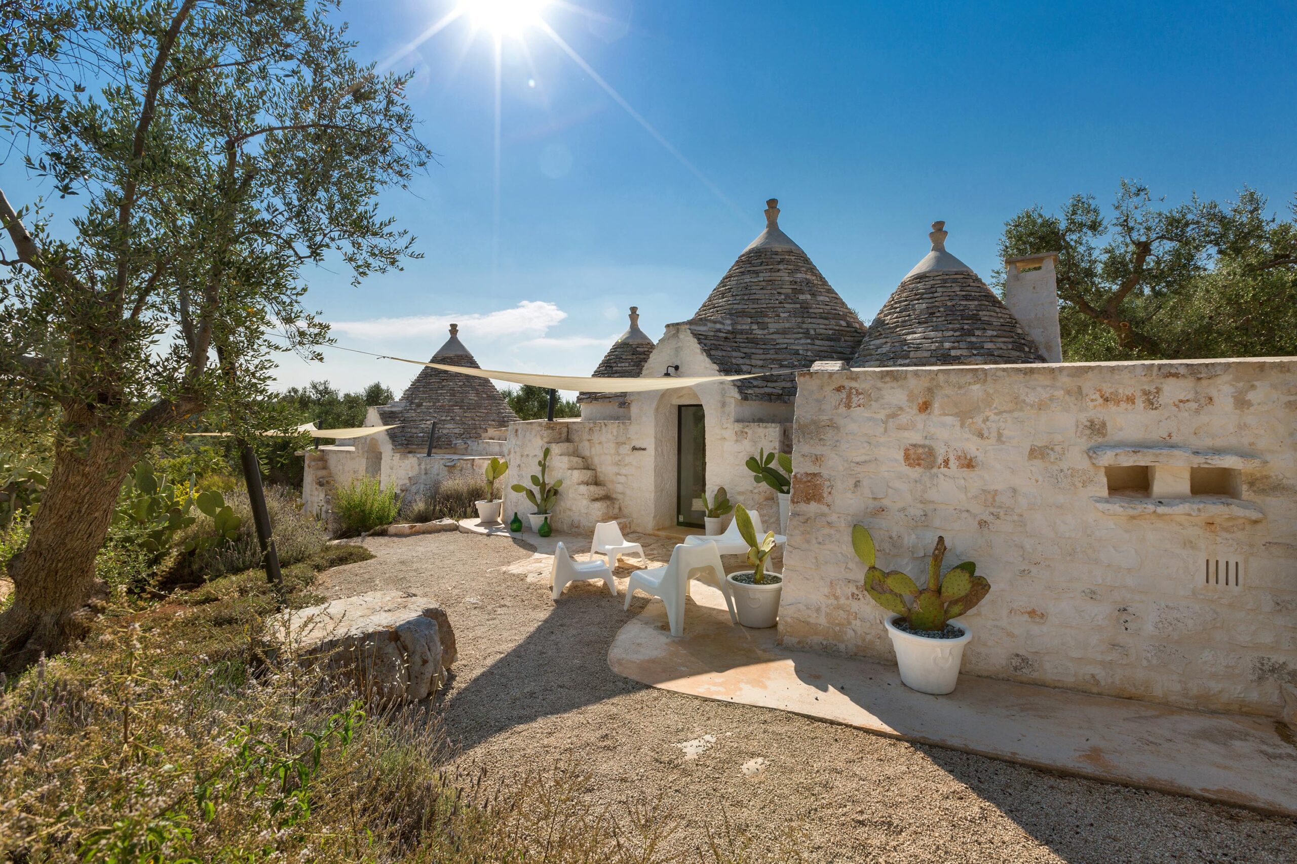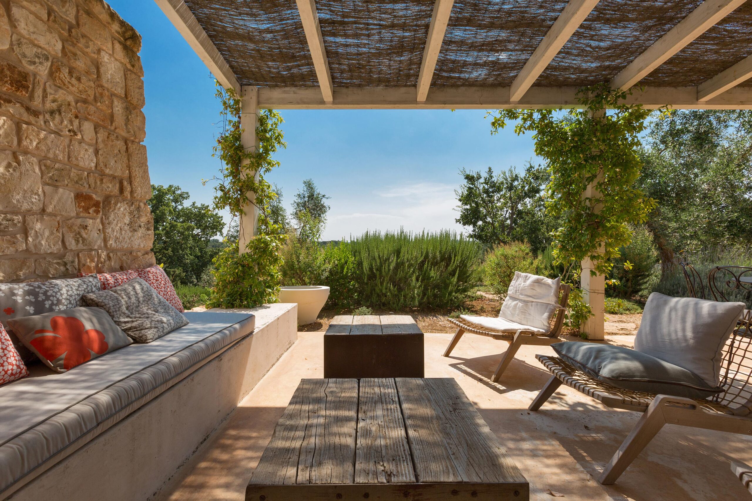 The property is located in the rural landscape of the Valle d’Itria, south of Ostuni, characterized by olive groves and traditional stone architecture.