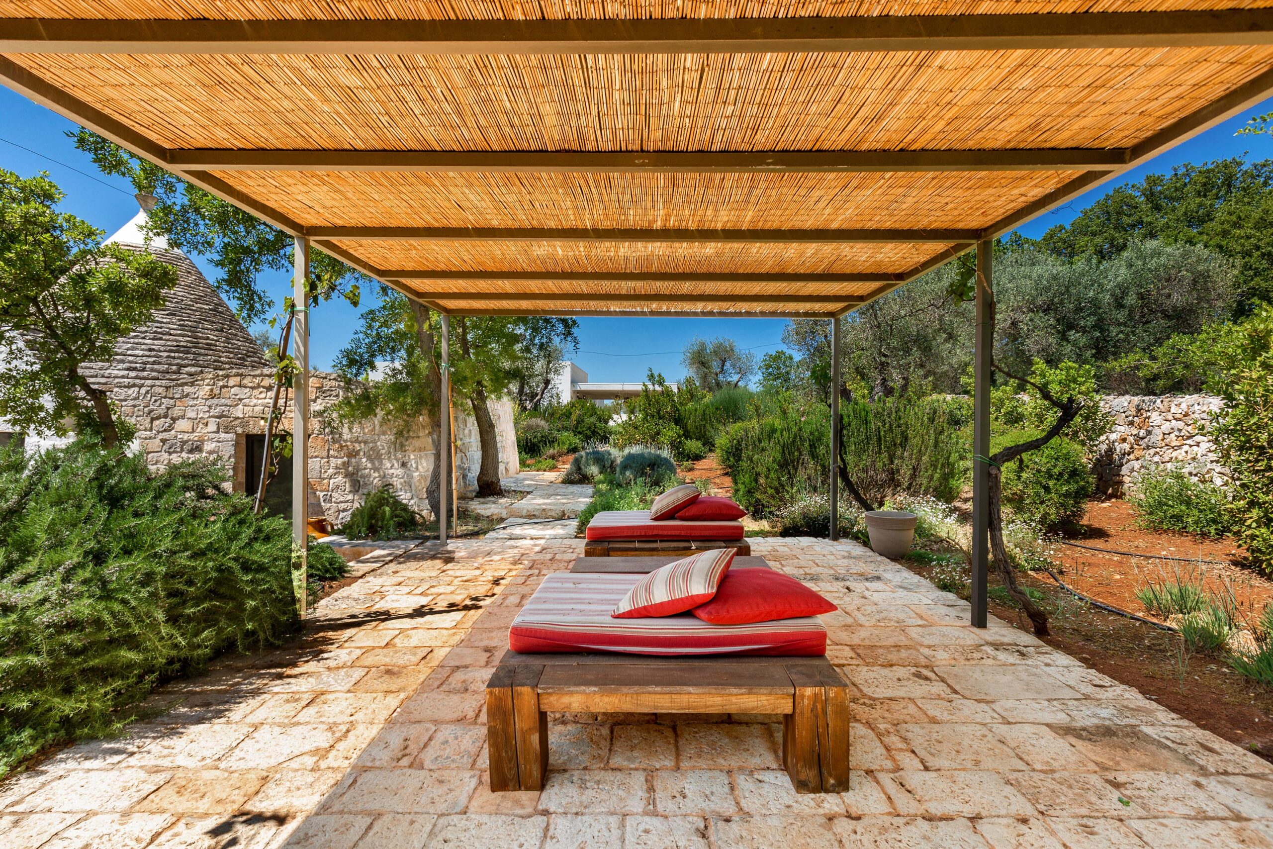 The property is situated in the rural territory of the Valle d’Itria, approximately 800 meters from the village of Casalini, which is accessible on foot or by bicycle.