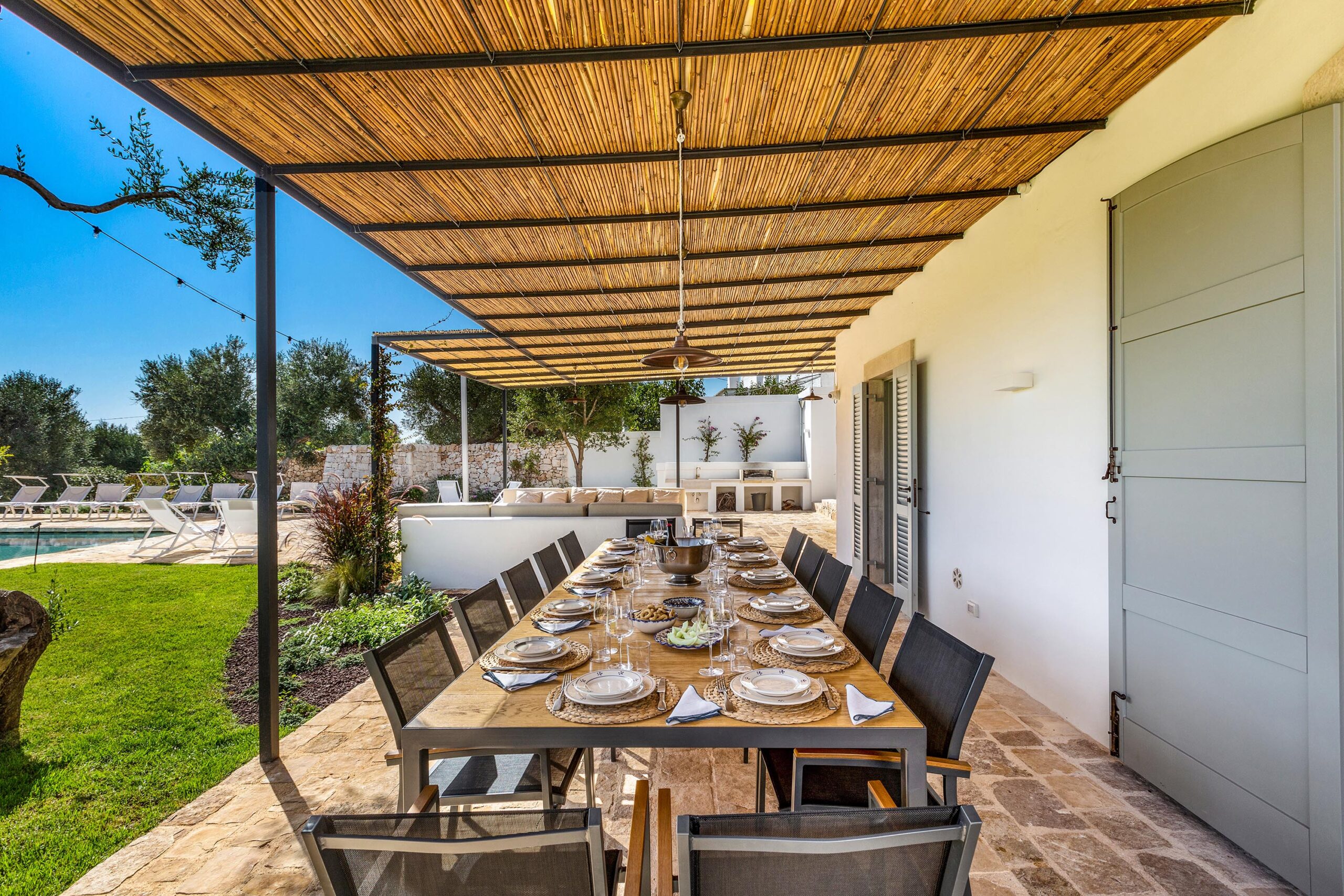 Stella del Monte is a countryside residence located in San Vito dei Normanni, comprised of a contemporary primary villa and a restored complex of traditional trulli. The property is established within a ten-thousand-square-meter olive grove, creating a spatial atmosphere defined by agricultural heritage and professional modernization. Accommodating up to eleven guests, the estate is positioned in the rural hinterland of the Brindisi province, offering privacy within a lush landscape of established greenery and manicured lawns. The residence represents a coherent integration of historical dry-stone architecture and modern functional requirements