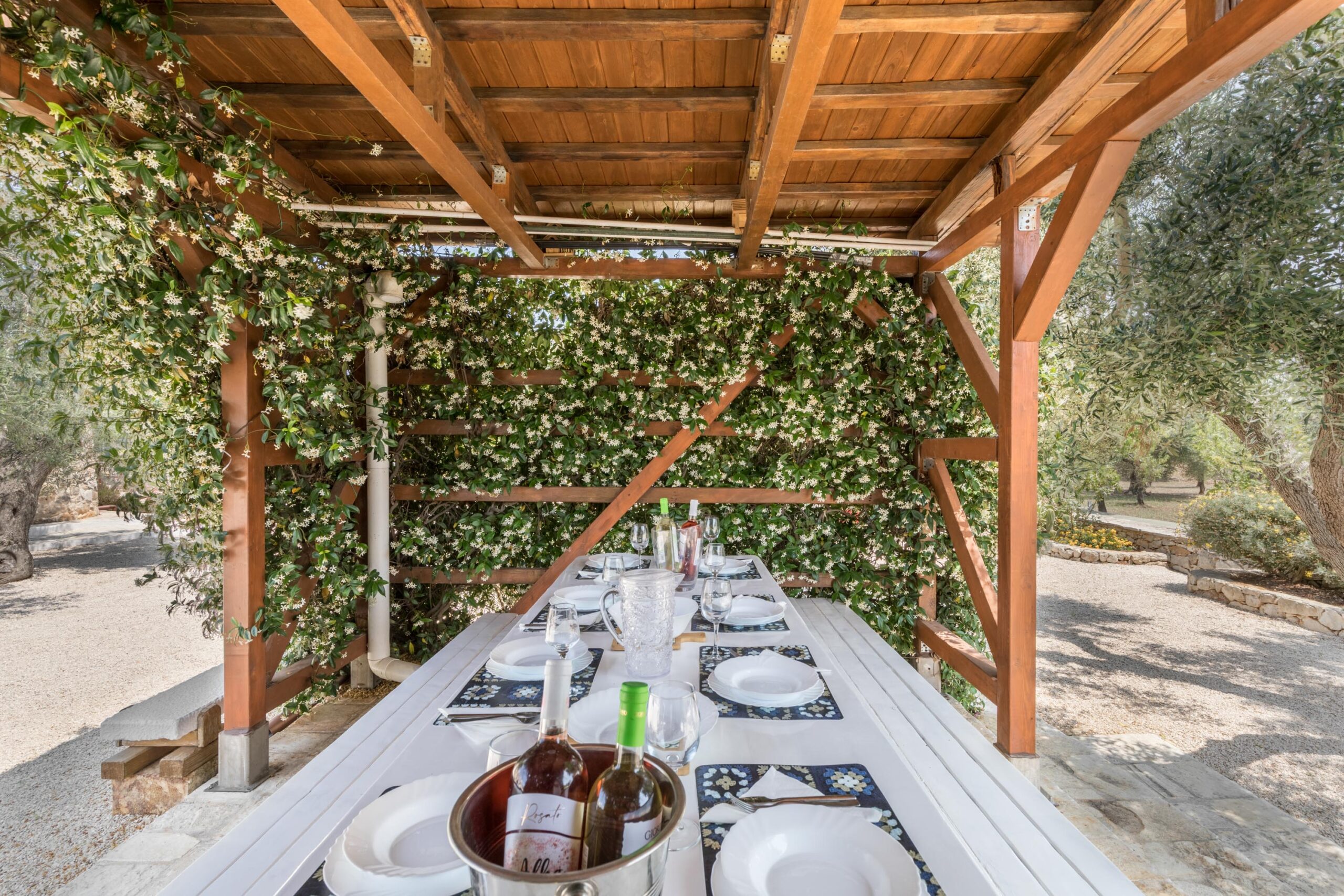 Trulli Ion is a residential complex of typical units situated in the countryside of the Itria Valley, approximately four kilometers from the center of Ostuni. The property consists of a renovated complex of traditional dry-stone structures and an independent outbuilding, framed by an estate of olive and fruit trees. With a total capacity of twelve guests, the estate provides a spatial atmosphere characterized by agricultural heritage and professional modernization. Positioned within a ten-thousand-square-meter plot, the residence establishes a coherent balance between historical preservation and contemporary functional requirements.