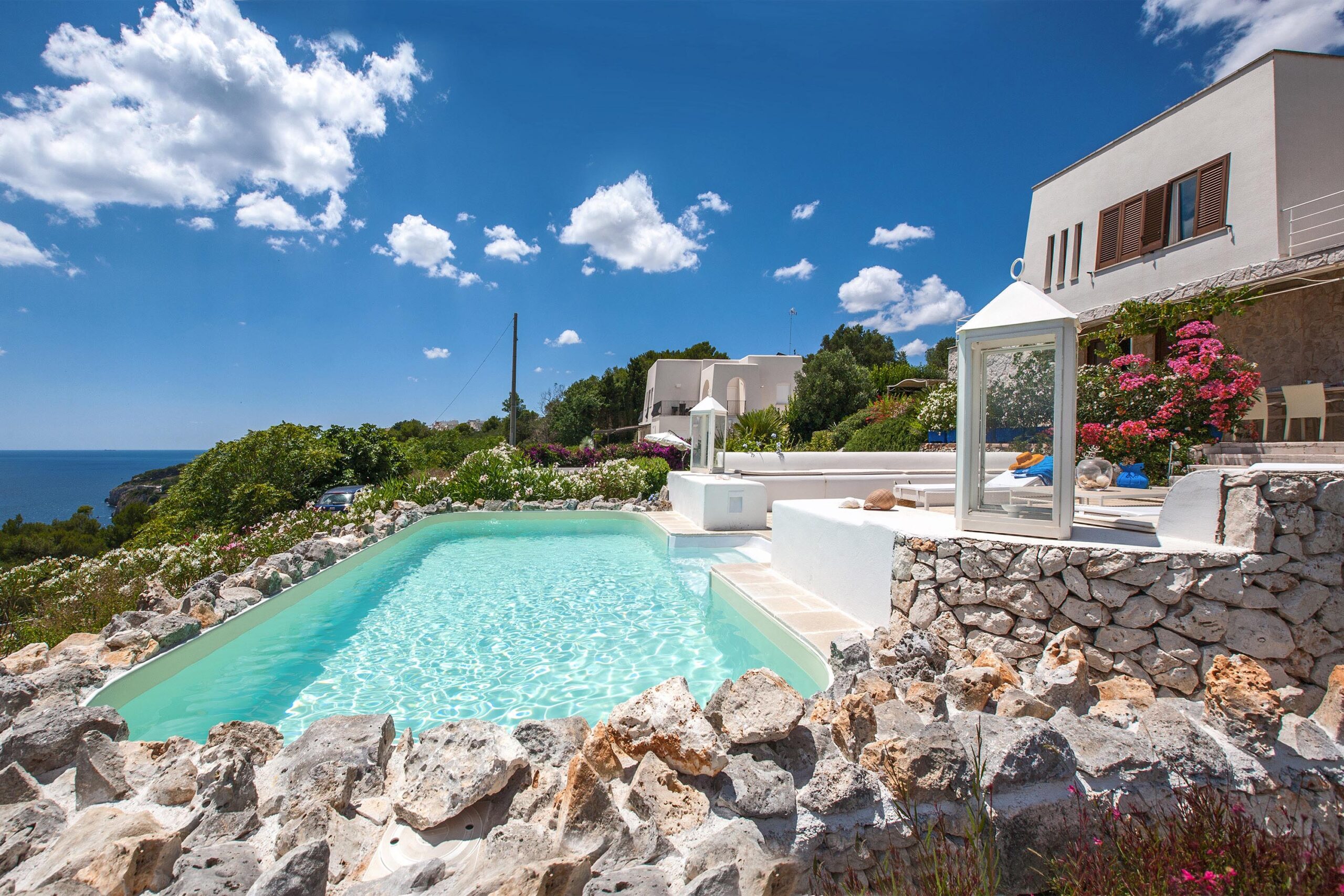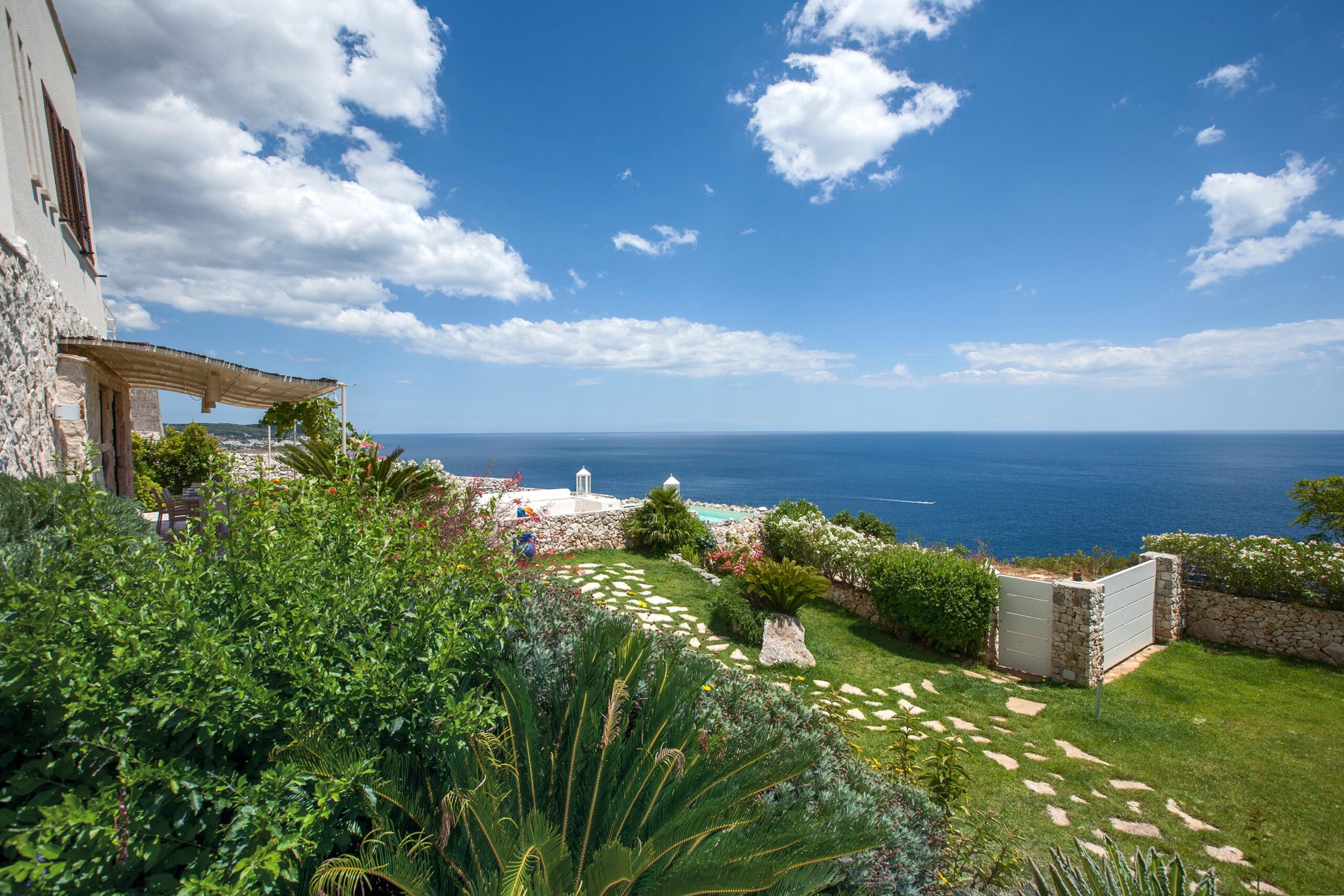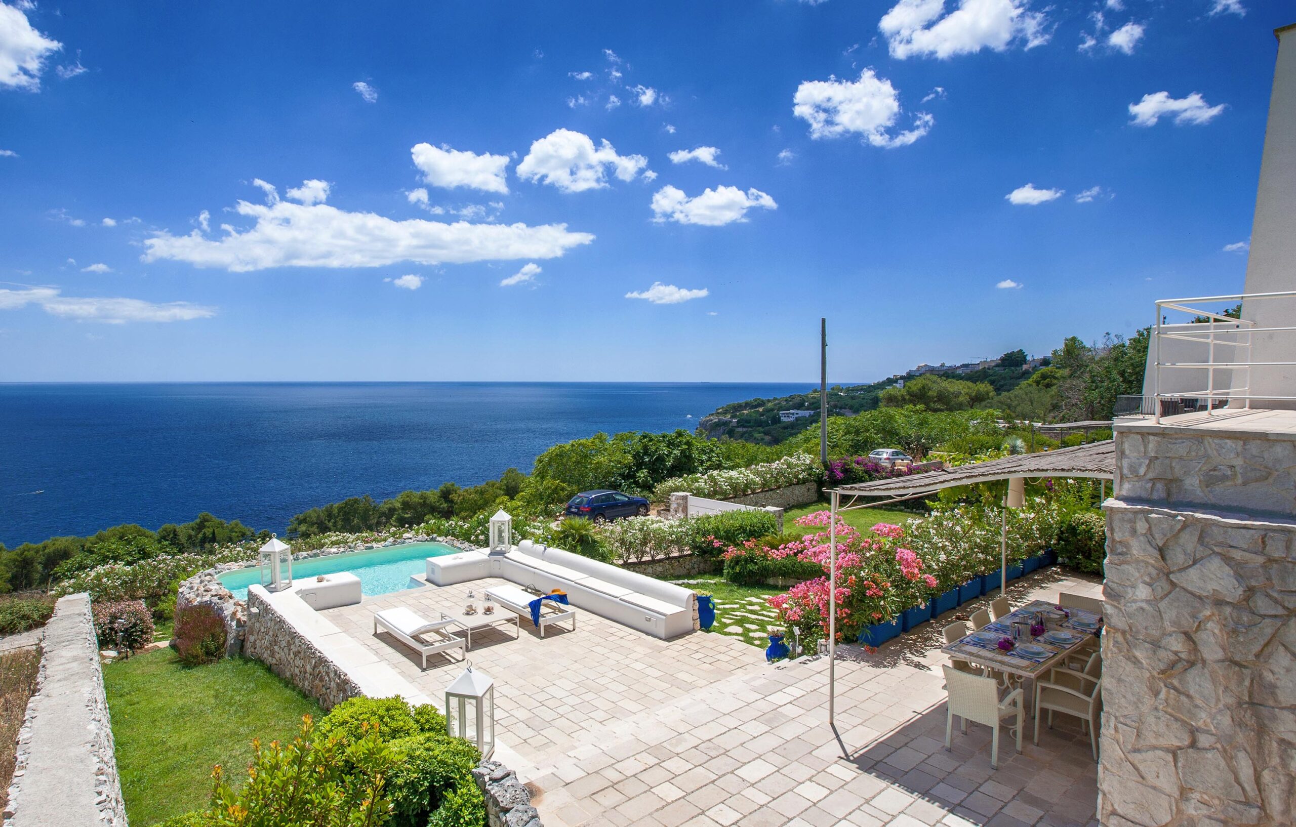 The property is located on the coastal promontory of Castro, offering proximity to the seaside amenities and restaurants of Castro Marina.