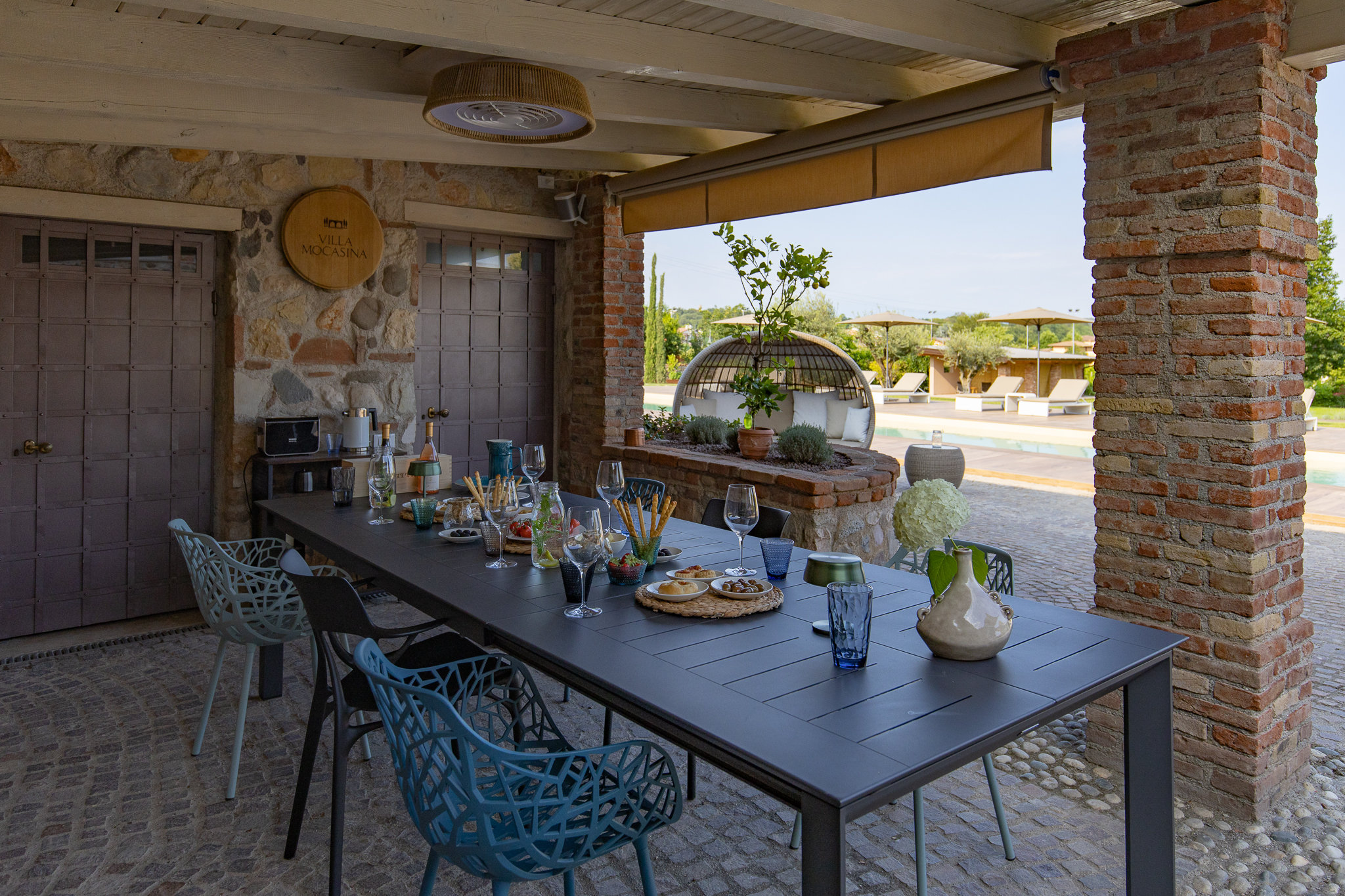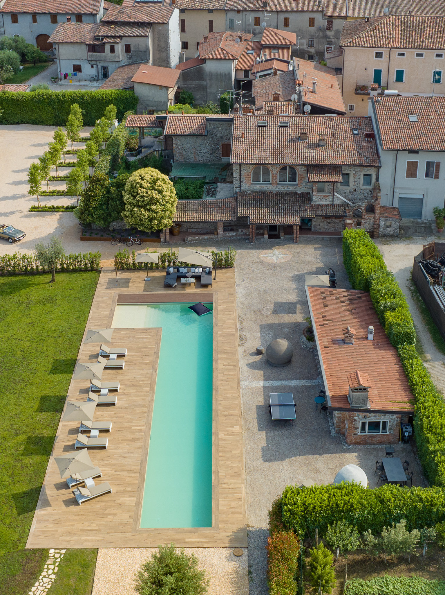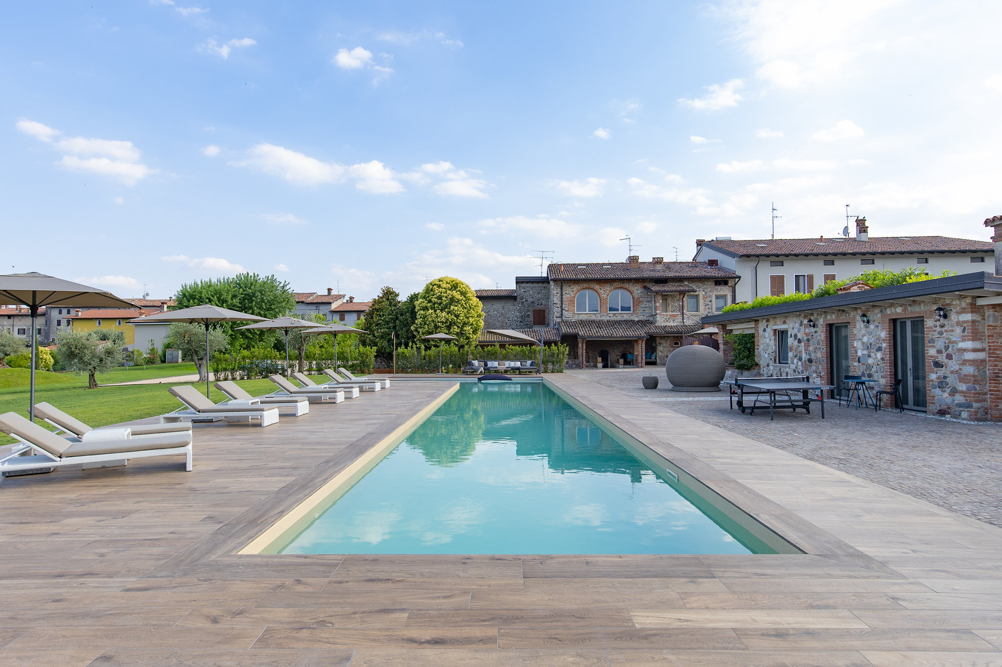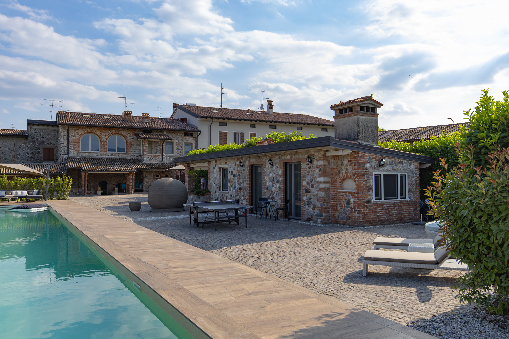 Villa Mocasina is a restored 17th-century countryside estate located in the historic setting of Calvagese della Riviera, within the Valtènesi wine region near Lake Garda. Originally a monastery and later a residence and winery, the property has been carefully reconfigured into a private villa that preserves its architectural heritage while integrating contemporary systems and spatial clarity. Designed to accommodate up to 11 guests across the main villa and pool house, the estate is defined by its structured layout, culinary orientation, and strong connection between interior and exterior environments within a fully enclosed landscaped setting.