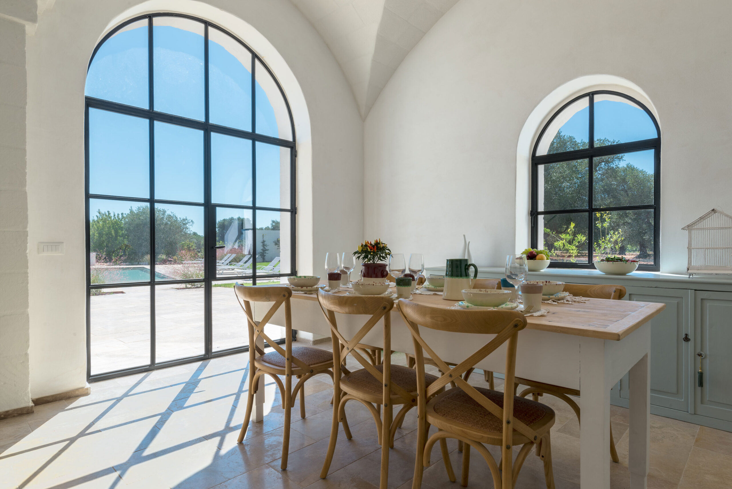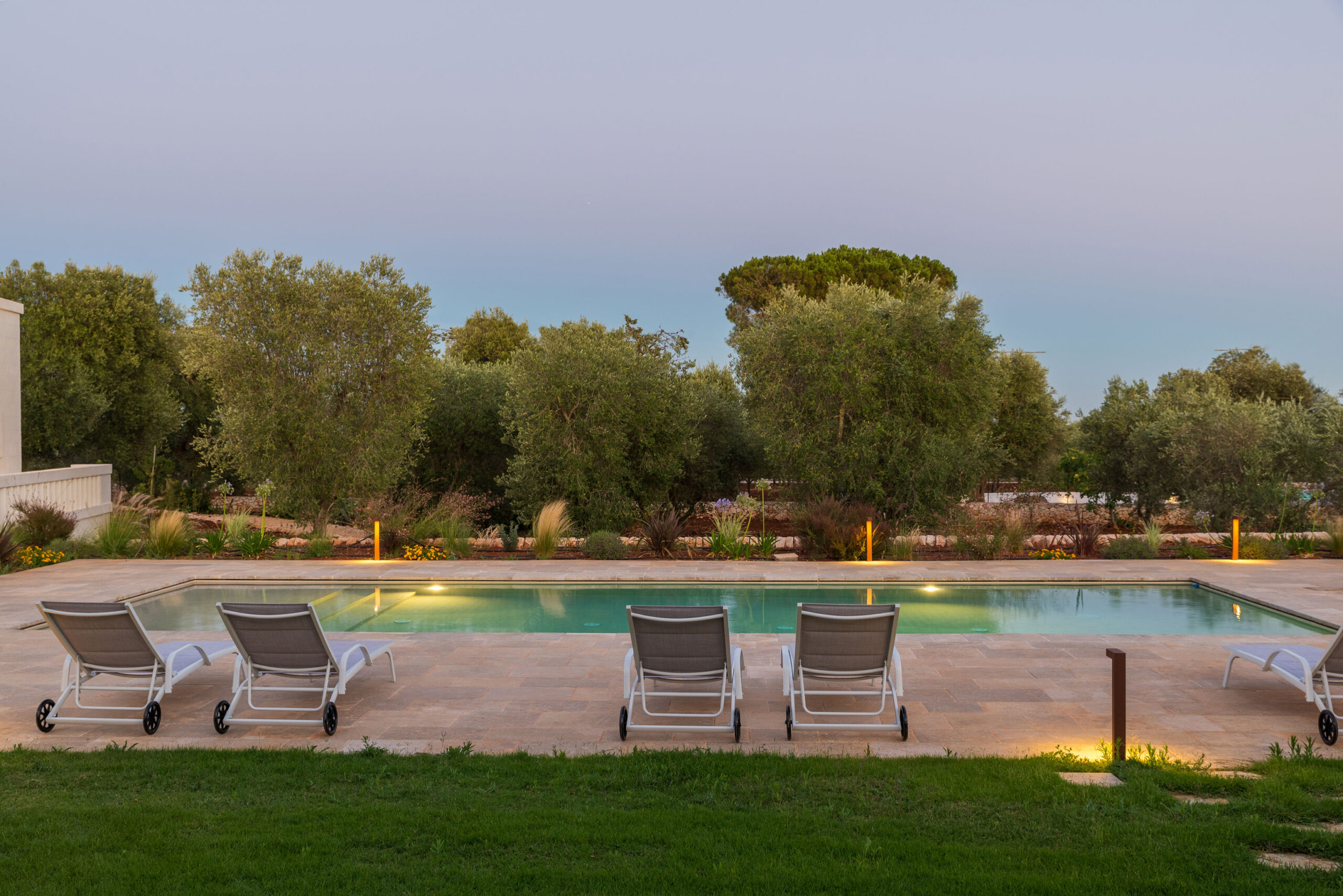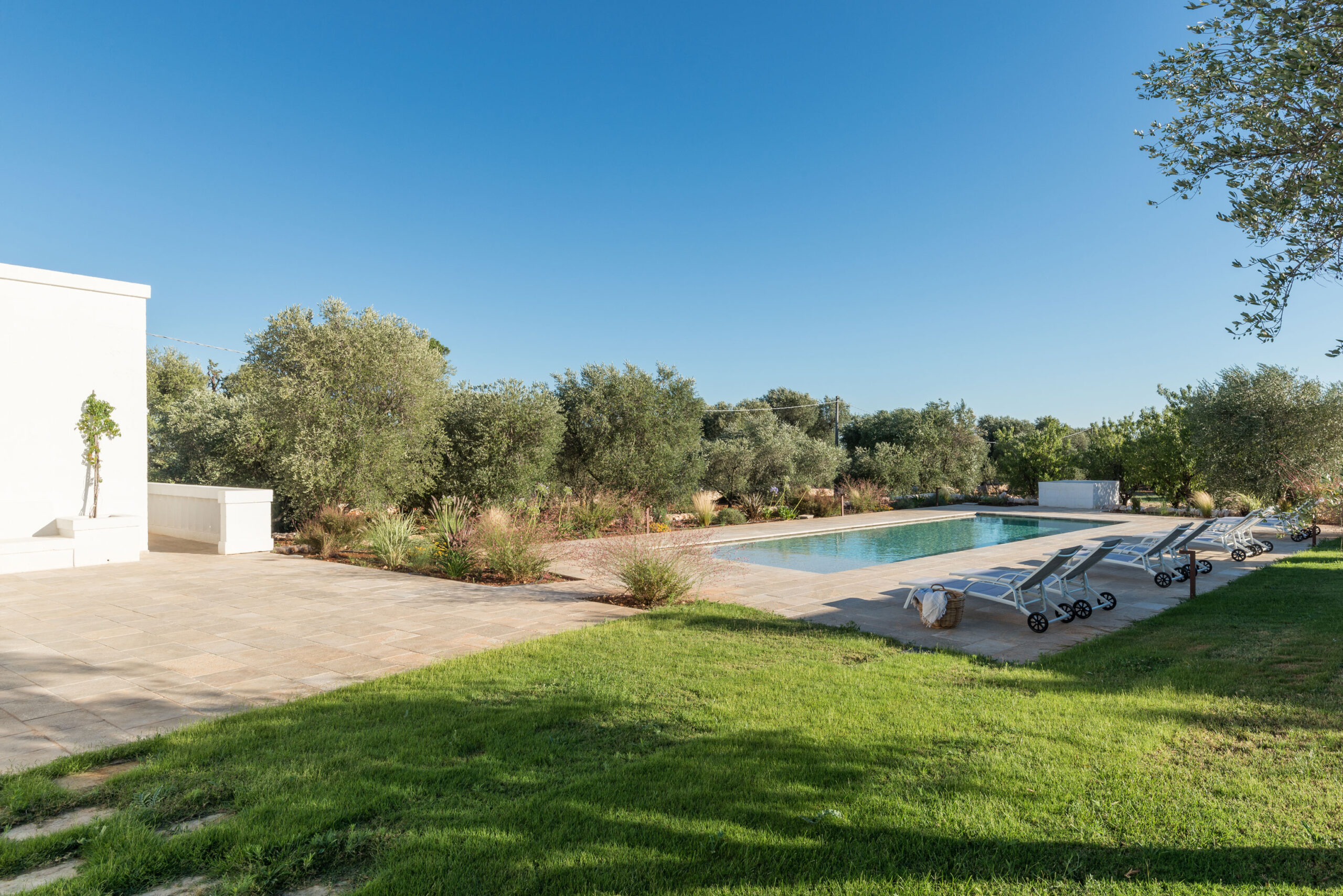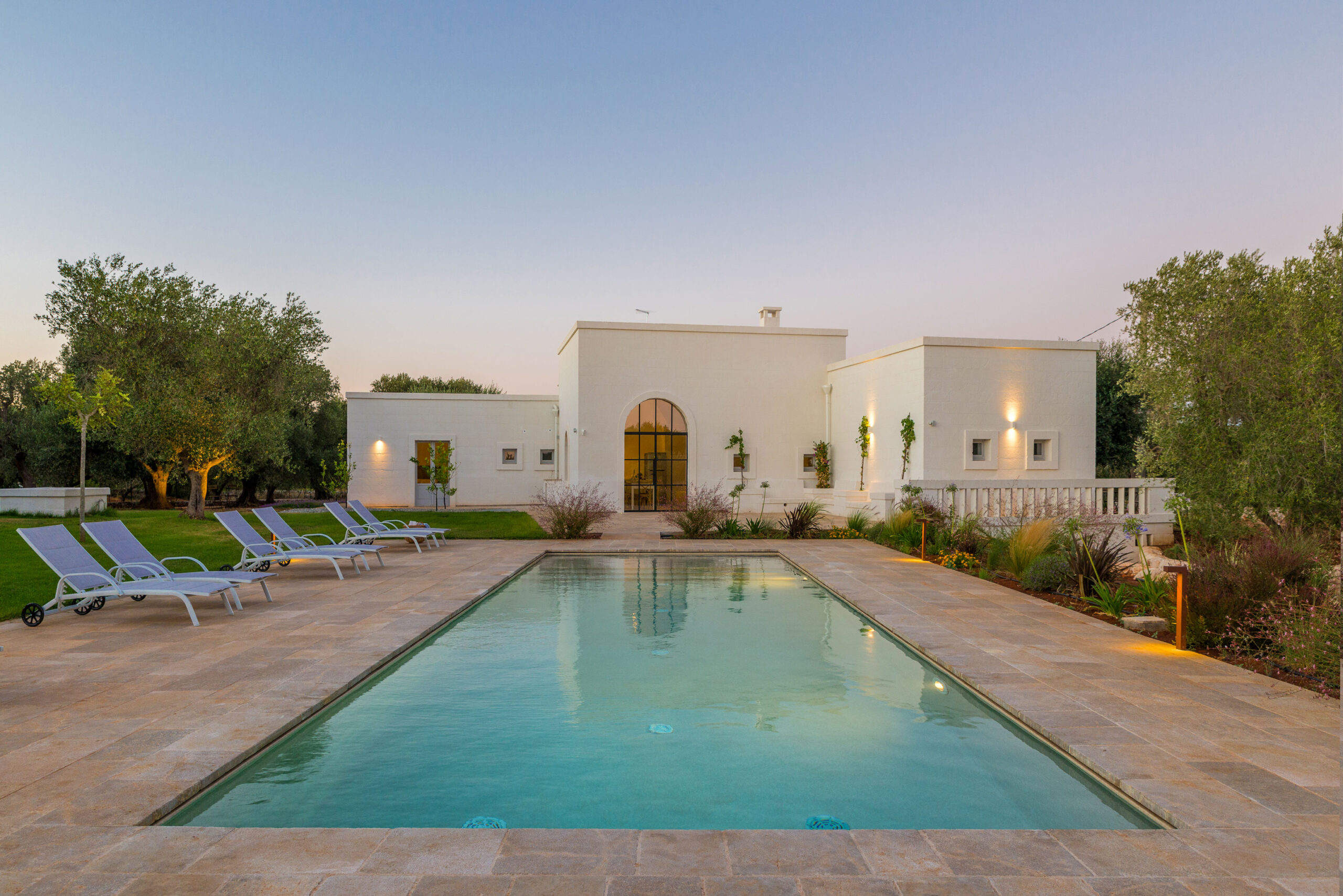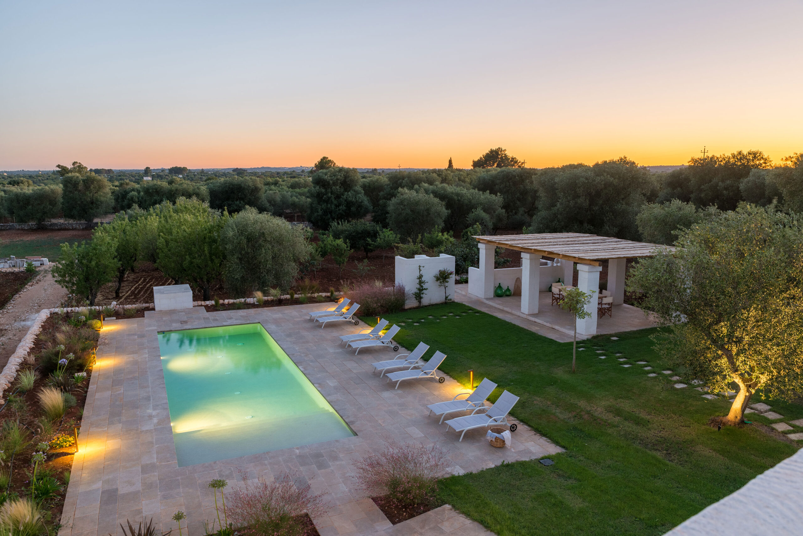 Villa Pomes is a historic country mansion situated in the Valle d’Itria, in the territory of Ostuni. The property is the result of a renovation of an ancient estate, utilizing sustainable green building techniques and solar energy systems while preserving traditional Apulian architectural elements such as lime milk scialbatura, arches, and stone. The residence provides a composed spatial atmosphere for up to ten guests, set within a plot of 5,000 square meters. Positioned in the countryside approximately 15 kilometers from the coast, the estate represents a harmonious integration of historic volume and modern technical requirements.